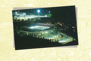Melbourne Olympics 56 * 96 and outline of the MCG (main stadium of 1956 Olympics) on self-adhesive paper with all over sport wall paper pattern, 18 September 1990 (day of IOC decision), zero value. Green. |